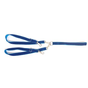 Guia dupla confeccionada em tecido nylon com camurça; Costura reforçada; Regulagem de tamanho para as duas guias, Totalmente ajustável, permite levar 2 cachorros de diferentes tamanhos segurando apenas uma guia. Mosquetão com trava de segurança; Feixe giratório; Evita o empolamento das guias; Segura e confortável; Disponível na cor: azul Tamanho: único. Medidas aproximadas: 70 cm à 1 metro de comprimento. Guia removível, podendo ser utilizada para passear com 1 um ou 2 dois cachorros Marca: Não Informado