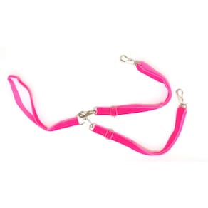 Guia dupla confeccionada em tecido nylon com camurça; Costura reforçada; Regulagem de tamanho para as duas guias, Totalmente ajustável, permite levar 2 cachorros de diferentes tamanhos segurando apenas uma guia. Mosquetão com trava de segurança; Feixe giratório; Evita o empolamento das guias; Segura e confortável; Disponível na cor: rosa Tamanho: único. Medidas aproximadas: 70 cm à 1 metro de comprimento. Guia removível, podendo ser utilizada para passear com 1 um ou 2 dois cachorros Marca: Não Informado