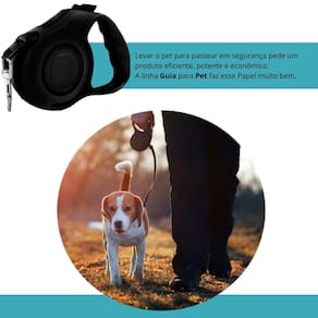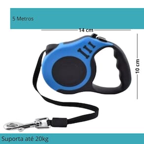 5 metros de guia para mais liberdade Segurança e controle durante o passeio Suporta até 20kg Produzido com material de qualidade Trava de segurança