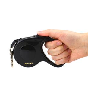 Guia Retratil Classic 3m até 15kg Guia automática para cães de pequeno e médio porte com 3 metros de comprimentos, indicada para cães até 15kg. É um produto seguro, longa vida do sistema de trava, forma ergonômica da alça botão de trava extenso, corda inquebrável (até limites de pesos), fácil utilização, controle total de seu cão. Possui sistema de pré-tensionamento que mantém a guia sempre esticada e travamento altamente confiável e fácil de usar. Oferece o máximo em liberdade de movimentação ao cão, controle, segurança, com fácil manuseio e um design inovador. A guia se estende, enrola e desenrola com grande naturalidade, oferecendo ao cão liberdade para se movimentar em seus passeios. Devido à leve tensão permanente do cordão e ao sistema integrado de trava e recolhimento com uma mão, você controla sempre os movimentos do seu cão. Ao mesmo tempo, o mecanismo interno de molas mantém o cordão sob uma ligeira tensão constantemente. Com o sistema integrado de trava e recolhimento com uma mão, o dono sempre tem o controle dos movimentos do seu cão. Além disso, a guia pode ser fixada num determinado comprimento, usando a trava permanente.