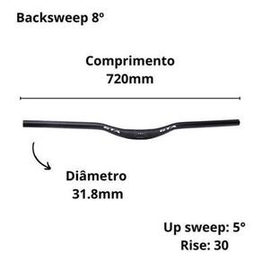 O guidão possui medidas de 720mm de comprimento e 31.8mm de diâmetro, sendo perfeito para suporte de guidão, avanço ou mesa. Feito em alumínio 6061-t6, ele é resistente e durável. Além disso, possui um design moderno na cor preta, tornando sua bicicleta ainda mais estilosa.