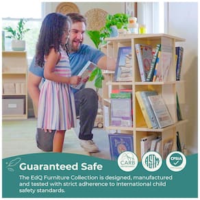A estante giratória infantil Guidecraft EdQ Kids Rotating Bookshelf é uma torre de livros de chão em madeira de bétula natural, projetada para uso em quartos infantis, salas de aula e brinquedotecas. A base giratória em 360° com três níveis de prateleiras permite que as crianças acessem livros e objetos de todos os lados, facilitando a organização e o uso autônomo.?