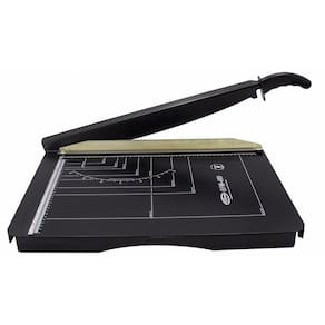 - Capacidade máxima de corte: até 20 folhas de 75 g - Comprimento do corte: 460 mm - Dimensões mm : 675 x 375 x 080 - Dimensões do tampo: 540 x 350 mm - Tampo em aço pintado eletrostaticamente para maior resistência - Serigrafia com escala milimétrica e dimensões mais usuais de corte - Lâminas em aço SAE 1045 - Apoio em borracha para maior resistência - Régua de segurança e prensadora de folhas - Peso aproximado: 4,6 kg