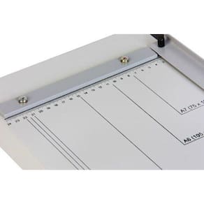 Guilhotina Refiladora Facão de Mesa 36cm Ofício Capacidade 20fls A guilhotina modelo LV36 é feita totalmente em aço tratado para evitar a oxidação e com pintura epóxi eletrostática. Suas peças são em aço retificado, cabo de borracha e mola para ajustar a pressão da faca superior, com isso a faca não abaixa sozinha evitando acidente. Modernidade e praticidade em um equipamento com a garantia de alta qualidade da marca EXCENTRIX. Manuseio macio, para obtenção de bons resultados com facilidade. Especificações técnicas: Capacidade: 20 folhas de 75g cada Comprimento de corte: 360mm Área total da mesa: 355 x 455mm Largura da mesa: 340mm Itens Inclusos: 01 Guilhotina Refiladora Facão de Mesa 36cm Ofício - 20fls Produto plataforma Plast.