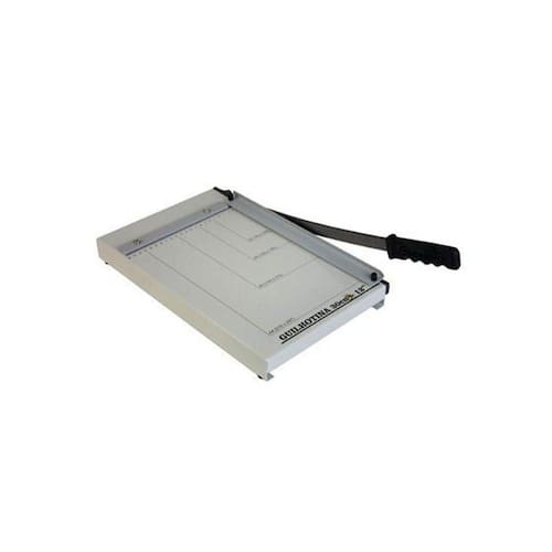 Guilhotina Refiladora Facão de Mesa 36cm Ofício A guilhotina modelo LV36 é feita totalmente em aço tratado para evitar a oxidação e com pintura epóxi eletrostática. Suas peças são em aço retificado, cabo de borracha e mola para ajustar a pressão da faca superior, com isso a faca não abaixa sozinha evitando acidente. Modernidade e praticidade em um equipamento com a garantia de alta qualidade da marca EXCENTRIX. Manuseio macio, para obtenção de bons resultados com facilidade. Especificações técnicas: Capacidade: 10 folhas de 75g cada Comprimento de corte: 360mm Área total da mesa: 240 x 455mm Largura da mesa: 240mm Itens Inclusos: 01 Guilhotina Refiladora Facão de Mesa 36cm Ofício Produto plataforma Plast.