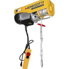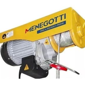Guincho Coluna Talha Elétrico Menegotti Prime Mgc 300/600kg 127vCARACTERÍSTICAS- Equipamento projetado para suportar a elevação de cargas. Com baixa manutenção e ótima capacidade de precisão na execução do trabalho.- Ideal para reduzir o esforço físico, aumentando a produtividade e a eficiência do operador.- Equipamento projetado para trabalhos de elevação de cargas acionado por motor redutor elétrico e motofreio.- O freio é acionado por mola de compressão e desativado por força centrífuga.- É recomendado para cargas e descargas de produtos em pequenas edificações, oficinas, depósitos, armazéns, poços, etc. Lugares com espaço limitado.- Capacidade para suportar cargas de 300 kg e 600 kg com moitão.- Possui redutor com carcaça de alumínio.- Proteção (estrutura) em chapa de aço reforçado.- Motor elétrico monofásicos com regime de trabalho intermitente S3 20% 10 minutos.- Cabo de aço é galvanizado e não rotativo (19 x 7) com alma de fibra, cabo de 1 qualidade.- Fim de curso para desligamento automático.- Botoeira pendente com chave de emergência.DADOS TECNICOSVoltagem: 127:: Capacidade de Elevação de Carga (kg): 300600:: Altura de Elevação: 1206 m:: Velocidade de Elevação (m/min): 10:: Motor Elétrico Monofásico: 1500W 60Hz:: Peso:: 15kg:: Regime de Trabalho: S3 20% 10 min. Intermitente:: Classe de Isolação: B:: Grau de Proteção: IP54:: Dimensões (CxLxA): 385x147x178mm:: Ângulo de Giro (): 180:: Fixação (AxB) (mm): 220x100:: Parafuso de Fixação (mm): M10 x 24