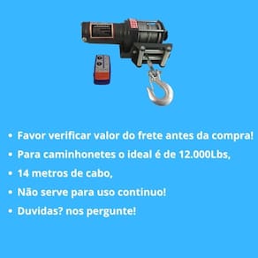 Os Guincho Elétricos 12v são perfeitos para trabalhos de locomoção na horizontal. São robustos e potentes. Equipamento indispensável para jipes, Gaiolas, quadriciclos, ATV. Proporcionam praticidade e facilidade sem ter qualquer esforço desnecessário podendo ser duplicada com uso de patesca.