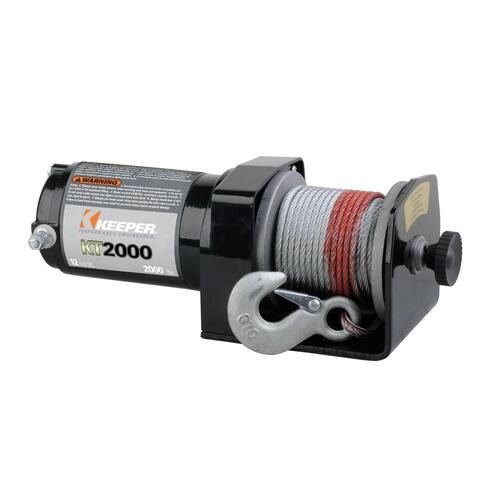Guincho elétrico KEEPER KT2000 12V, capacidade de 2.000 libras, cabo de aço com gancho, embreagem de bobina livre, montagem em quadriciclo e trailer, controle portátil