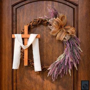 Leve fé, beleza e significado para sua decoração de Páscoa com esta linda guirlanda em formato de cruz, adornada com flores delicadas. Ideal para portas, paredes ou ambientes religiosos, ela transmite paz, espiritualidade e o verdadeiro sentido da Páscoa