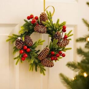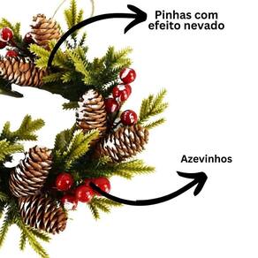 Guirlanda Natal Pinhas e Azevinhos Nevados 25cm