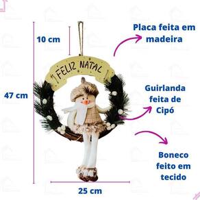 Conteúdo da embalagem: 1 guirlanda de natal boneco de neve