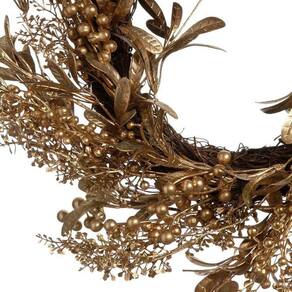 A Guirlanda Reluz tem 41 cm de diâmetro e é produzida em plástico e fibra natural. Ideal para decorar portas, paredes e até mesmo a mesa para ceia de natal.