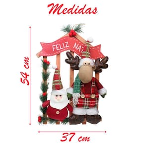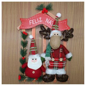 Guirlanda Natalina De Madeira Enfeite De Porta Decorada 54cm