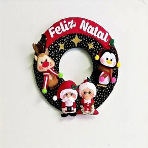 Guirlanda papai noel enfeite natal decoração casa gl002 tema: natal confeccionada em feltro e tecido. Costurada a mão. Pode haver alteração nas cores conforme disponibilidade do material em estoque, porém preservando a harmonia da peça. Medida aproximada: 28cm de diâmetro peso: 400 gr esse produto é artesanal. Produtos artesanais podem sofrer pequenas alterações de cor, tamanho, textura.