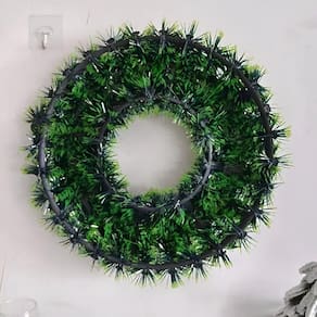 COR: Verde; MATERIAL: Plástico; DIÂMETRO: 40cm; DURABILIDADE: Resistente ao desbotamento, pode ser usada ano após ano. BAIXA MANUTENÇÃO: Sem necessidade de rega ou cuidados especiais. SUSTENTÁBILIDADE: Ajuda a preservar a natureza, reduzindo a necessidade de cortar plantas reais. CONTEÚDO DA EMBALAGEM: