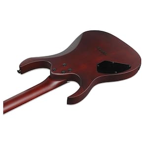 Guitarra de 6 cordas ibanez rg series modelo rg gio grg121par-bkf, corpo em poplar com tampo em poplar burl art grain e acabamento deep dusk burst flat, ponte f106 e captação ibz-6.