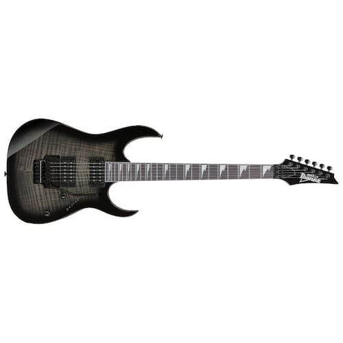 Um instrumento não precisa ser caro para ter excelente sonoridade. A série GIO foi desenvolvida para músicos que desejam qualidade e desempenho em uma linha super acessível. Design arrojado, visual atraente, recursos de ponta, para uma performance muito além das demais opções de mesmo custo benefício, com o tradicional padrão de qualidade que você só encontra na Ibanez. Guitarra de 6 cordas Ibanez RG Series modelo RG GIO GRG320FA-TKS, corpo em Poplar com tampo em Basswood Flamed Maple Art Grain e acabamento Transparent Black Sunburst, ponte Double Locking com trêmolo e captação Infinity. - Construção: Braço parafusado - Corpo: Poplar com tampo em Basswood Flamed Maple Art Grain - Escala: Bound Purpleheart com marcação dente de tubarão (sharktooth) inlay branca - Braço: Maple - Tamanho da escala: 25.5" - Trastes: 24 Medium - Ponte: Double Locking com trêmolo - Nut: Locking (com travas) - Hardware: Preto - Captação: Infinity R (braço) e Infinity R (ponte), todos Passivos em Cerâmica - Controles: 1 Volume + 1 Tone + Chave Seletora 5 Posições - Afinação de fábrica: 1E,2B,3G,4D,5A,6E - Calibre das cordas: .009/.011/.016/.024/.032/.042 * Afinação de fábrica e Calibre das cordas informadas apenas como referência ** Especificações sujeitas a alterações sem aviso prévio Escala: 648mm/25.5" a : Largura - 43mm no NUT b : Largura - 58mm no 24F c : Espessura - 19.5mm no 1F d : Espessura - 21.5mm no 12F Raio: 400mmR