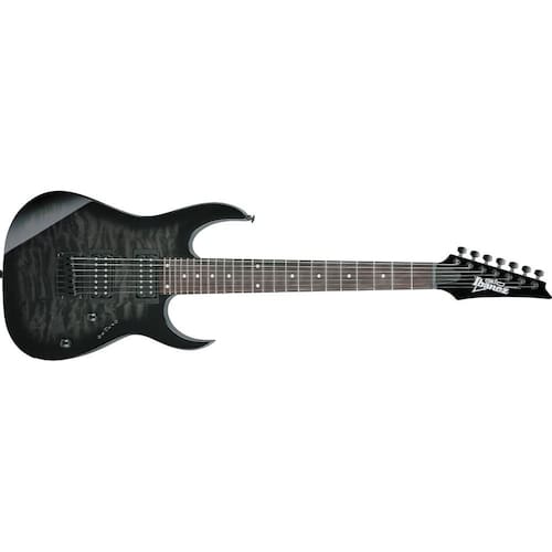 Um instrumento não precisa ser caro para ter excelente sonoridade. A série GIO foi desenvolvida para músicos que desejam qualidade e desempenho em uma linha super acessível. Design arrojado, visual atraente, recursos de ponta, para uma performance muito além das demais opções de mesmo custo benefício, com o tradicional padrão de qualidade que você só encontra na Ibanez. Guitarra de 7 cordas Ibanez RG Series modelo RG GIO GRG7221QA-TKS, corpo em Poplar com tampo em Quilted Maple Art Grain e acabamento Transparent Black Sunburst, ponte F107 e captação Infinity. - Construção: Braço parafusado - Corpo: Poplar com tampo em Quilted Maple Art Grain - Escala: Bound Purpleheart com marcação dot inlay branca - Braço: Maple - Tamanho da escala: 25.5" - Trastes: 24 Jumbo - Ponte: F107 - Hardware: Preto - Captação: Infinity R (braço) e Infinity R (ponte), todos Passivos em Cerâmica - Controles: 1 Volume + 1 Tone + Chave Seletora 5 Posições - Afinação de fábrica: 1E,2B,3G,4D,5A,6E,7B - Calibre das cordas: .009/.011/.016/.024/.032/.042/.054 * Afinação de fábrica e Calibre das cordas informadas apenas como referência ** Especificações sujeitas a alterações sem aviso prévio Escala: 648mm/25.5" a : Largura - 48mm no NUT b : Largura - 68mm no 24F c : Espessura - 20.5mm no 1F d : Espessura - 22.5mm no 12F Raio: 400mmR