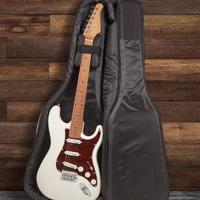 Guitarra benson Hardy 901 OW/TT, estilo Strato, captação SSS da Wilkinson, com corpo em Alder, braço e escala em Roasted Maple, Ponte Wilkinson, nut de Osso, ferragens cromadas e com bag. Na cor Olympic White e escudo Tortoise. Apresentando o modelo 901 OW/TT da série Hardy, esta guitarra é uma obra-prima de engenharia e design, destinada a elevar sua experiência musical a um novo patamar. Com um corpo de Alder que oferece ressonância profunda e um braço de Roasted Maple em formato C para conforto e jogabilidade excepcionais, a Benson 901 garante uma experiência de toque suave e responsiva. Os captadores Wilkinson Single Coil Alnico 5 proporcionam uma variedade de tons ricos e expressivos, enquanto a ponte Wilkinson Tremolo WOV6 oferece estabilidade de afinação e ação suave. Além de sua excepcional qualidade sonora, a Benson 901 apresenta um design elegante e durável. Com acabamento em Alder e detalhes cromados, esta guitarra é verdadeiramente uma obra de arte visual. As tarraxas cromadas Die Cast blindadas garantem uma afinação estável, enquanto o nut de osso oferece uma ressonância excepcionalmente clara e definida. Se você procura por uma guitarra que combine estilo, desempenho e durabilidade, a Benson 901 da linha Hardy Series é a escolha perfeita. Prepare-se para explorar novos horizontes musicais e elevar sua paixão pela música com esta obra-prima de precisão e artesanato. Adquira já a sua e experimente o som lendário da Benson. ESPECIFICAÇÕES Marca: Benson Linha: Hardy Series Modelo: 901 OW/TT Shape: Stratocaster Corpo: Alder Braço: Roasted Maple - Shape C Escala: Roasted Maple - 22T C 25.5 - R 9.5 Nut: Osso - 42.8mm Captadores: 3x Wilkinson Single Coil Alnico 5 Controles: Chave 5 Posições, 1 Volume e 2 Tone Cor: Olympic White Escuto: Tortoise Ponte: Wilkinson Tremolo WOV6 Tarraxas: Chrome Die Cast Blindadas Acompanha: Hard Bag DeLuxe Imagens meramente ilustrativas : 24 meses pelo Importador / Fornecedor Marca: Não Informado