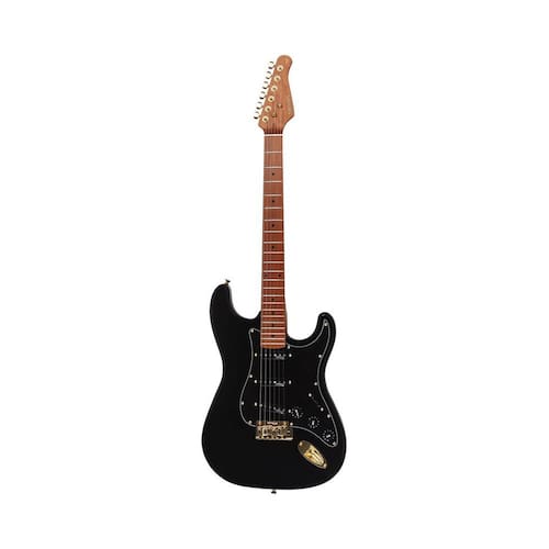 Guitarra benson Hardy 901 BK/BK Gold, estilo Strato, captação SSS da Wilkinson, com corpo em Alder, braço e escala em Roasted Maple, Ponte Wilkinson, nut de Osso, ferragens cromadas e com bag. Na cor Preta com escudo Preto e ferragens douradas. Apresentando o modelo 901 BK/BK Gold da série Hardy, esta guitarra é uma obra-prima de engenharia e design, destinada a elevar sua experiência musical a um novo patamar. Com um corpo de Alder que oferece ressonância profunda e um braço de Roasted Maple em formato C para conforto e jogabilidade excepcionais, a Benson 901 garante uma experiência de toque suave e responsiva. Os captadores Wilkinson Single Coil Alnico 5 proporcionam uma variedade de tons ricos e expressivos, enquanto a ponte Wilkinson Tremolo WOV6 oferece estabilidade de afinação e ação suave. Além de sua excepcional qualidade sonora, a Benson 901 apresenta um design elegante e durável. Com acabamento em Alder e detalhes cromados, esta guitarra é verdadeiramente uma obra de arte visual. As tarraxas cromadas Die Cast blindadas garantem uma afinação estável, enquanto o nut de osso oferece uma ressonância excepcionalmente clara e definida. Se você procura por uma guitarra que combine estilo, desempenho e durabilidade, a Benson 901 da linha Hardy Series é a escolha perfeita. Prepare-se para explorar novos horizontes musicais e elevar sua paixão pela música com esta obra-prima de precisão e artesanato. Adquira já a sua e experimente o som lendário da Benson ESPECIFICAÇÕES Marca: Benson Linha: Hardy Series Modelo: 901 BK/BK Gold Shape: Stratocaster Corpo: Alder Braço: Roasted Maple - Shape C Escala: Roasted Maple - 22T C 25.5 - R 9.5 Nut: Osso - 42.8mm Captadores: 3x Wilkinson Single Coil Alnico 5 Controles: Chave 5 Posições, 1 Volume e 2 Tone Cor: Black Preta Escuto: Black Preto Ferragens: Douradas Ponte: Wilkinson Tremolo WOV6 Tarraxas: Chrome Die Cast Blindadas Acompanha: Hard Bag DeLuxe Imagens meramente ilustrativas : 24 meses pelo Importador / Fornecedor Marca: Não Informado Ean: 7899701569793