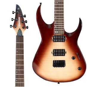 A Waldman WM320F BRB é uma Super Strato na belíssima configuração Brown Burst construída com corpo de Poplar com Flamed Top equipado com ponte Tremolo, braço de Maple com escala de Laurel, nut em Black Graphite e tarraxas pretas.