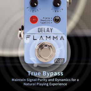 FLAMMA Pedal de atraso FC03 Guitarra elétrica 3 modos de efeitos de atraso analógico real Echo Tape Echo True Bypass - Excitação de atraso triplo: o pedal de atraso FC03 possui atraso analógico, eco real e eco de fita, proporcionando uma infinidade de efeitos - Pedal de atraso flexível: tempos de atraso que variam de 5 ms a 600 ms. Ajuste o nível de atraso e feedback para personalizar seu som exclusivo - True Bypass: quando o pedal da guitarra é desligado, seu sinal passa intocado, garantindo um tom inalterado e autêntico - Mini e durável: nosso pedal de atraso de guitarra leve pesa apenas 153 g e possui uma caixa de metal robusta com uma textura fosca, garantindo portabilidade e durabilidade - Fonte de alimentação não incluída: certifique-se de que seu pedal de efeitos de guitarra esteja conectado a uma fonte de alimentação CC de 9 V com um mínimo de 150 mA