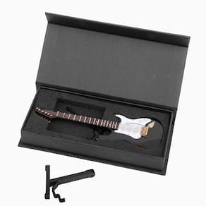 Esta guitarra elétrica em miniatura feita à mão é uma réplica muito detalhada. Com tamanhos diferentes e incluindo 1 guitarra em miniatura, 1 suporte, 1 capa. Parece requintado e feito de madeira, pode ser utilizado como decoração de casa, ornamentos decorativos de coleção e também adequado para figuras de ação e bonecas. - Inclui: 1 guitarra elétrica em miniatura, 1 suporte, 1 capa. Configuração da corda: 6 cordas. Pode ser utilizado como decoração e ornamento com tema musical (instrumento simulador não reproduzível) - Sobre o tamanho: O tamanho da guitarra elétrica em miniatura é 18 cm x 5,8 cm x 1,4 cm // 18 cm x 5,8 cm x 1,4 cm. Com estojo de instrumento musical forrado de veludo vermelho, para manter e salvar esta réplica de guitarra - Sobre o material: A guitarra em miniatura é feita de madeira com superfície polida, possui uma construção robusta. Este material e artesanato tornam a réplica da guitarra mais suave e brilhante - Design em miniatura realista: réplica em miniatura de instrumento musical muito detalhada de guitarra com cordas, pinos de afinação, trastes e corpo de madeira, requintadamente trabalhada a partir de madeira com acabamento polido, é mais do que apenas um colecionável, também é um acessório de decoração de casa de moda versátil - Multiuso: esta guitarra em miniatura pode ser colocada em sua casa, mesa, sala de escritório, estante de livros e sala de música para decoração. Também pode ser utilizado como artesanato criativo para famílias, amigos, músicos e amantes da música em feriados ou outras celebrações - Lembrete: Não é possível reproduzir e não emite som