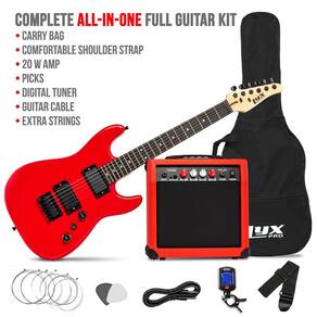 LyxPro Guitarra elétrica de 36 polegadas e kit para crianças com guitarra iniciante de tamanho 3/4, amplificador, seis cordas, duas palhetas, alça de ombro, afinador de clipe digital, cabo de guitarra - Conjunto de guitarra para iniciantes para meninos e meninas | O pacote definitivo para iniciantes inclui guitarra de tamanho infantil 3/4 e todas as peças e equipamentos que elas precisam para arrasar direto da caixa | Escolha perfeita para jogadores iniciantes e intermediários de 9 a 12 anos - GUITARRA ELÉTRICA DE 91 CM DE REAL | A guitarra plug in apresenta a mesma escala e materiais de alta qualidade que um instrumento de tamanho completo de um adulto, incluindo o fingerboard de jacarandá premium, gola canadense de bordo, botões de volume/tom e muito mais - Amplificador de 20 watts com cabo | O pacote inclui amplificador de 20 W com alto-falante embutido, entrada de fone de ouvido e entrada auxiliar para tocar junto com música no telefone ou leitor de MP3 | Controles integrados incluem ganho, graves, agudos, volume e moagem - Afinador digital e acessórios | Mini sintonizador de clipe operado por bateria e livro de instruções ensina as crianças a afinar sua guitarra para melhor qualidade de som | O kit também vem com [6] cordas, [2] palhetas e alça de ombro confortável - Dê o presente de uma bela música | O conjunto multifuncional para leigos é o sonho de um músico em ascensão | De casa à escola às aulas, aprender guitarra nunca foi tão fácil! | Presente perfeito para o Natal, aniversário e muito mais