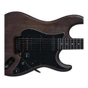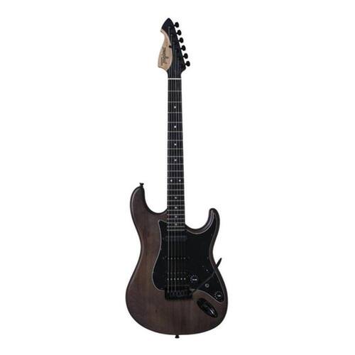 - Juninho Afram Signature - Corpo: Alder - Braço: Maple - Shape C - Escala: Rosewood com 22 trastes e marcações em acrílico; - NUT: Osso 43mm - Captadores: 1 mini Humbucker com imã cerâmico no braço, 1 single no meio e 1 humbucker na ponte com imã alnico; - Controles: 1 Chave seletora de 5 posições, 1 Volume, 1 Tonalidade e 1 Chave microswitch split para o captador da ponte - Ponte: Tremolo com 2 pivôs - Tarraxas: Pretas e blindadas Diecast - Cor: Transparent brown - Escudo: Black - Versão para canhotos Não Ean: 7898563977982