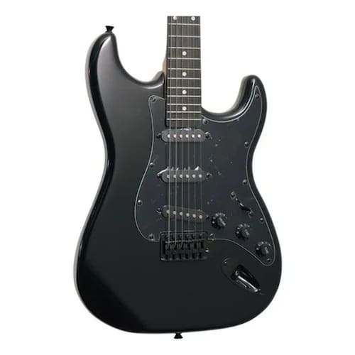 Com acabamento preto brilhante (BK), ferragens cromadas e escala escura, ela atende desde guitarristas iniciantes até