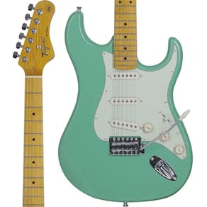 DESCRIÇÃO A série de Guitarras Woodstock TG530 da Tagima é caracterizada pelo alto padrão de qualidade e acabamento, e pelo seu estilo único. O modelo TG530 possui corpo em Basswood, braço Maple e escala Rosewood com 22 trastes, marcações pretas e tarraxas blindadas. Os 3 captadores Single Coils Standard, proporcionam um som puro, sem distorções e contam com hastes individuais para cada corda. Conta ainda com chave seletora de 5 posições, 1 controle de volume e 2 de tonalidade e ponte em Tremolo cromada. CARACTERÍSTICAS Modelo: WOODSTOCK TG530