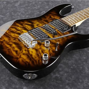 Guitarra Ibanez Grx70qa Sb Sunburst ESPECIFICAÇÕES Modelo: GRX70QA Braço: GRX em Maple Tampo: Quilted Maple Art Grain Corpo: Poplar Escala: Bound Purpleheart Trastes: 22 Tipo de Traste: Médio Marcação: Pontos Brancos Ponte: T106 tremolo Captação: Infinity R H Braço Passivo/Cerâmico Infinity RS S Meio Passivo/Cerâmico Infinity R H Ponte Passivo/Cerâmico Ferragens: Cromadas Afinação de fábrica: 1E,2B,3G,4D,5A,6E Cordas: .009/.011/.016/.024/.032/.042 Espaçamento das Cordas: 10.5mm Cor: Sunburst Ean: 7907028308190