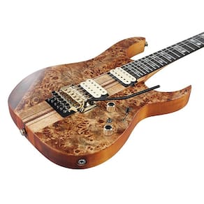 O tampo Poplar Burl apresenta um grão de madeira exótico e o corpo American Basswood oferece um tom natural e plano.