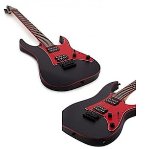 Guitarra ibanez grg131dx bkf rg gio series superstrato black flat com escala escura e escudo vermelho A ibanez traz ao mercado musical guitarras de qualidade profissional e estética belíssima a ibanez grg131dx traz o agressivo formato de superstrato combinado com madeiras, elétrica e ferragens modernas top de linha. Com poplar, a grg131dx tem sua sonoridade balanceada perfeitamente entre sons quentes e preenchidos, com muito brilho e com excelente sustain, tudo isso reforçado pelos seus captadores cerâmicos humbucker infinity r na ponte e no braço. Através das suas tarraxas blindadas e sua ponte f106, a grg131dx garante a mais precisa e mais duradoura afinação combinada com a estabilidade da ponte com carrinhos individuais, perfeita para longos períodos de uso sem preocupação e com estilo. Além disso, a grg131dx conta com um controle de volume e tone e uma chave seletora quíntupla para garantir máxima versatilidade timbrística tanto em palcos como em gravações em estúdio. Isso tudo sem mencionar a estética belíssima da linha rg, com acabamento brilhoso, marcações em dente de tubarão vermelhas na escala e belíssima coloração. A guitarra perfeita para todos os momentos