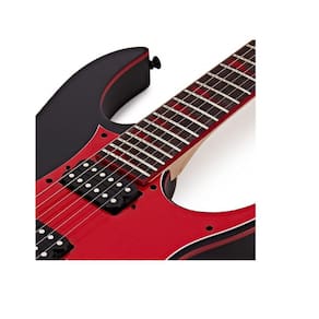 Guitarra ibanez grg131dx bkf rg gio series superstrato black flat com escala escura e escudo vermelho A ibanez traz ao mercado musical guitarras de qualidade profissional e estética belíssima a ibanez grg131dx traz o agressivo formato de superstrato combinado com madeiras, elétrica e ferragens modernas top de linha. Com poplar, a grg131dx tem sua sonoridade balanceada perfeitamente entre sons quentes e preenchidos, com muito brilho e com excelente sustain, tudo isso reforçado pelos seus captadores cerâmicos humbucker infinity r na ponte e no braço. Através das suas tarraxas blindadas e sua ponte f106, a grg131dx garante a mais precisa e mais duradoura afinação combinada com a estabilidade da ponte com carrinhos individuais, perfeita para longos períodos de uso sem preocupação e com estilo. Além disso, a grg131dx conta com um controle de volume e tone e uma chave seletora quíntupla para garantir máxima versatilidade timbrística tanto em palcos como em gravações em estúdio. Isso tudo sem mencionar a estética belíssima da linha rg, com acabamento brilhoso, marcações em dente de tubarão vermelhas na escala e belíssima coloração. A guitarra perfeita para todos os momentos