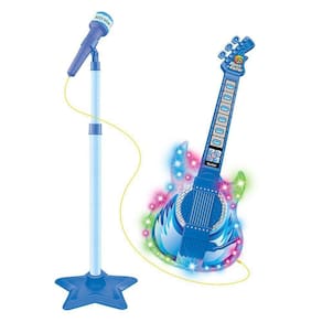 Guitarra Infantil Com Microfone Pedestal Toca Mp3 Com Luz E Som - Azul Kit Guitarra eletrônica Rock show + Microfone Com Luzes e som Na cor AzulToca musica do Celular via caboBotão liga e desliga Guitarra com Luzes Coloridas Com 02 Modos Modo 01: Sons na GuitarraModo 02: Notas Musicais 06 Botões com notas musicais na guitarra02 Botões com Musicas 01 Alavanca Com som Botão VolumeDiferentes Melodias:Do, Re, Mi, Fa, So, LaEntrada para Microfone Com PedestalEntrada Cabo P2Idade - 03+Funciona 03 Pilhas AA ( não inclusas)Tamanho Guitarra - 48 cm x 16 cm x 2,3 cmTamanho Microfone - 18 cm x 6cm A Pedestal regula até 76 cm Acompanha corda para segurar a guitarraGarantia 90 dias contra defeitos de fabricação..Selo Inmetro: CE-BRI/OCP00190