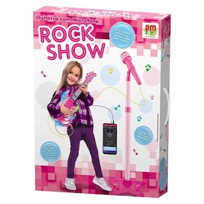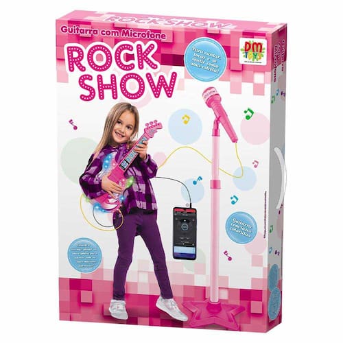 Guitarra Infantil com Microfone Pedestal - Rock Show - Rosa - DM Toys: agora sua pequena está preparado para um show de verdade! A Guitarra com Microfone Pedestal Rock Show é a segunda principal atração do show. A primeira é sua pequena. Essa linda guitarra de brinquedo com luzes coloridas e microfone, é perfeita para brincar de cantar, tocar e se sentir como uma estrela! Conecte o MP3 player ou smartphone para cantar as suas músicas favoritas. Informações: • Produto: Guitarra com Pedestal Microfone Rock Show • Marca: DM Toys • Coleção: Rock Show • Tipo: Guitarra Infantil com Microfone • Categoria: Instrumentos Musicais de Brinquedo • Tamanho (C x A x L): - Guitarra: 48 x 19 x 5,5 cm - Microfone: 85 x 20.5 x 20.5 cm • Conteúdo: - 01 pedestal montável - 01 microfone - 01 guitarra - 01 cabo P2 • Recomendação: para crianças a partir de 04 anos de idade Especificações: • Referência: DMT5893 • Código de Barras: 7899205958932 • Embalagem (C x A x L): 44 x 32 x 06 cm • Embalagem (Peso): 0.585 kg • Material / Composição: Plásticos PP, PS, PVC e ABS • Alimentação: Funcionamento à pilhas - 3 pilhas AA (não incluídas) • Registro: CE-BRI/OCP0019-NO001/20 • Certificado: Órgãos Autorizados - OCP´S (Organismos de Certificação de Produtos) Benefícios De Brincar: • Eleva a autoestima • Exercita a memória • Estimula o raciocínio • Exercita o imaginário • Desenvolve a criatividade • Desenvolve percepção visual • Desperta a atenção e curiosidade • Desenvolvimento neuropsicológico • Estimula habilidades motoras básicas • Incentiva a comunicação e linguagem • Desenvolve aspectos emocionais e afetivo • Estimula o reconhecimento de formas e cores Aviso: • As imagens são meramente ilustrativas • Os tamanhos e medidas são aproximados • As cores e estampas dos produtos podem ter variações • As informações são de responsabilidade do fabricante ou fornecedo