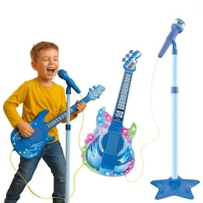 A Guitarra Infantil com Microfone Rock Show Azul DM Toys é ideal para as crianças brincarem de cantar e tocar. Com luzes coloridas e som, torna a experiência mais divertida e estimula a imaginação musical. Acompanha microfone com pedestal e conexão para MP3 player ou smartphone, permitindo cantar junto com as músicas favoritas. Indicada para crianças a partir de 4 anos, é perfeita para momentos de faz de conta com instrumentos musicais em casa. A DM Toys oferece brinquedo com certificado INMETRO e garantia contra defeitos de fabricação.