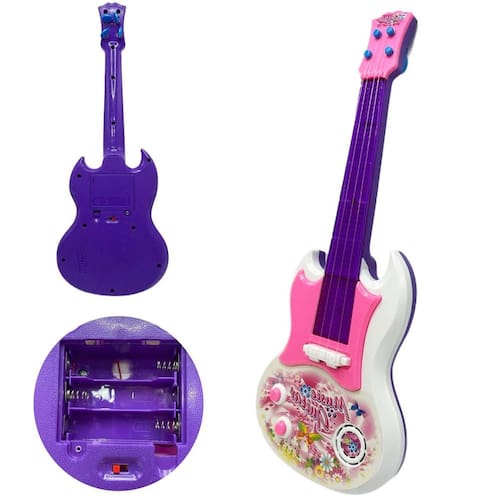 Indicação: a partir de 5 anos de idade Material: abs e ps Cor: rosa Funcionamento: requer 3 pilhas aa não inclusas Guitarra infantil music guitar led som instrumento feminino