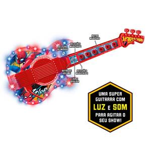 Guitarra Infantil Musical com Luz e Som - Marvel Spiderman - Toyng: Hora do show com a Guitarra Musical com Luz e Som do Homem-Aranha! Essa guitarra eletrônica vem com várias funções e toca diferentes tipos de sons, além disso, ela pode ser conectada em um smartphone ou mp3 player para cantar junto. Detalhes: • A Guitarra Spiderman acende luzes e toca sons de verdade • Uma super guitarra com luz e som para agitar o show • Com botões de: seleção de modos, seleção de sons, volume, liga/desliga e notas musicais • Conecte a guitarra em um smartphone ou mp3 player e cante junto • Ideal para as brincadeiras musicais e para despertar a paixão pela música nas crianças Informações: • Produto: Guitarra Spiderman Musical • Marca: Toyng • Coleção: Spiderman (Homem-Aranha) • Linha: Marvel • Tipo: Guitarrinha de brinquedo com luz e som • Categoria: Instrumentos Musicais de Brinquedo • Subcategoria: Guitarras Infantis • Tamanho: 50 cm aproximadamente • Conteúdo: 01 Guitarra • Recomendação: para crianças a partir de 04 anos de idade Especificações: • Modelo: Guitarra Musical com Luz e Som Homem Aranha • Referência: 51094 • Código de Barras: 7899871622038 • Embalagem (C x A x L): 50 x 21 x 05cm • Embalagem (Peso): 0.458 kg • Material / Composição: Plástico • Funcionamento: à pilhas - 03 pilhas AA 1.5v (não inclusas) • Registro: 007822/2023 • Certificado: Órgãos Autorizados - OCP´S (Organismos de Certificação de Produtos) Aviso: • As imagens são meramente ilustrativas • Os pesos, tamanhos e medidas são aproximados • As cores e estampas dos produtos podem ter variações • As informações são de responsabilidade do fabricante ou fornecedor