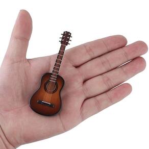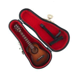 Com tamanhos diferentes: 3,93 “x 1,42" x 0,56"//10 cm x 3,61 cm x 1,42 cm e incluindo 1 miniatura de guitarra, 1 suporte, 1 estojo.