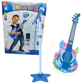 Guitarra Musical Infantil Azul Microfone Singer Star Castela
