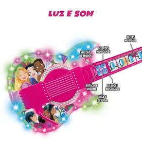 Guitarra Musical Princesas Disney com Luz e Som Toyng 51083 Descubra a magia da música com a Guitarra Musical das Princesas Disney, onde cada acorde ilumina a imaginação e traz os contos mais queridos para a realidade Projetada para encantar, esta guitarra não é apenas um instrumento, é um convite para viver aventuras inesquecíveis ao lado das princesas favoritas. Homologação Inmetro: IP-BRI-3626/2018-15