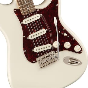 A guitarra Squier Classic Vibe 70s Stratocaster traz verdadeiro timbre das Stratocaster dos anos 70, o visual, o feeling e a vibe. Apesar do preço acessível, ela oferece mais do que você pode esperar, incluindo o nut feito em osso, os captadores single-coil em alnico (projetados pela Fender). Tudo o que você precisa para uma experiência com uma Stratocaster de verdade está aqui, desde o formato do braço, com perfil C, até a ponte tremolo estilo vintage. Os novos trastes narrow tal (mais altos e mais estreitos), oferecem a sensação de uma clássica Stratocaster. Se essa fora a sua primeira Stratocaster ou a décima, com certeza que você vai ficar impressionado com a Squier Classic Vibe 70s Stratocaster.