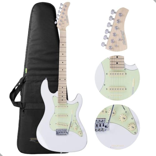Guitarra modelo Strato de timbre brilhante, diversas opções de cores e com ótima tocabilidade. Possui 3 captadores Single Coil de sonoridades versáteis, chave de 5 posições e ponte móvel com alavanca.Características Gerais- Modelo: STS100- Formato do Corpo: Strato- Madeira do Corpo: Basswood Sólido- Tampo: N/A- Acabamento: Brilhante- Braço: Maple- Construção: Bolt-On Neck Junção Parafusada - Escala: Maple 25,5 - Marcações: Dots- Tensor: Sim. Bilateral- Nut Capo Traste : 42,5mm- Número de Trastes: 22- Encordoamento: .09 / .042- Número de Cordas: 6- Ponte: Trêmulo Vintage 6 Parafusos - Captador Ponte: Single Coil Passivo- Captador Meio: Single Coil Passivo- Captador Braço: Single Coil Passivo- Jack: P10- Tarraxas: Blindadas Cromadas- Escudo: Mint Green- Utilização/Mão: Destro- Controles: Potenciômetro de Volume 1 , Potenciômetro de Tonalidade 2 e Chave Seletora de 5 Posições.Conteúdo da Embalagem:- 01 Guitarra- 01 CapaOutras Informações:- Garantia: 03 meses