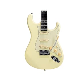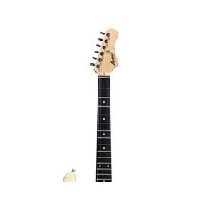 Especificações técnicas: • CORPO: Basswood • BRAÇO: Maple - Shape ESCALA: Tech wood - 22T - C 25.5”- R 9.5” • NUT: Plástico - 42mm • CAPTADORES: 3 single coils cerâmicos by Memphis • CONTROLES: Chave 5 posições, 1 volume e 2 tonalidade • PONTE: Tremolo • TARRAXAS: Diecast • COR: Olympic white • ESCUDO: AWH
