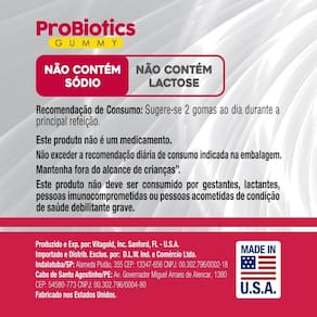 Descrição: Suplemento alimentar de Probiótico em gomas Vitgold.O Bacillus coagulans GBI 30 6086 ATCC 7050 pode contribuir com a saúde do trato gastrointestinal. Sem adição de açúcares. Não contém sódio. Não contém glúten. Não contém lactose. Recomendação de consumo: Sugere-se 2 gomas ao dia durante a principal refeição. Produto isento da Obrigatoriedade de Registro conforme RDC nº240/18. Fabricado nos Estados Unidos.