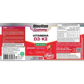 Gummy Vitamina D3 + K2 Morango Unilife 30 gomas GUMMIES - São suplementos em forma de pastilhas de goma, livres de glúten e zero açúcar, com nutrientes diversos que atendem a várias funções no organismo. A goma utilizada é a pectina gelificante e glaceante cera de carnaúba. Os aromas e corantes são naturais e edulcorante isomalte. Produto autorizado para comercialização em todo o território nacional através do anexo I da RDC 240/2018 da ANVISA. AFE do MS 6.02234-1. Marca: Não Informado