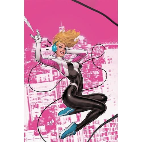 Acompanhe a primeira turnê da melhor girl band da Terra-65! As Mary Janes! Elas estão em um circuito de quatro cidades e Gwen prometeu à banda que essa grande oportunidade seria toda sobre música. Sem teias, apenas bateria. Mas quando um assassino mi sterioso mira na atração principal, Gwen começa a se perguntar como se envolveu nisso tudo. Além disso, o Hulk parece estar no encalço das estrelas do rock! O que Bruce Banner da Terra-65 realmente quer? Esta turnê deveria ser apenas sobre música, ma s quando os experimentos de Bruce Banner produzem resultados surpreendentemente simbióticos, Gwen finalmente terá que escolher um lado nesta festa de super-heróis!