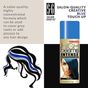 - Feixes altos de cor intensa azul headbanging: Salon Grafix High Beams tintura de cabelo spray temporário intenso em azul Headbanging, é uma fórmula de cobertura total de qualidade de salão que pode ser usada para cobrir raízes cinzentas ou adicionar toque especial a qualquer design de cabelo. Lata de 76,5 g